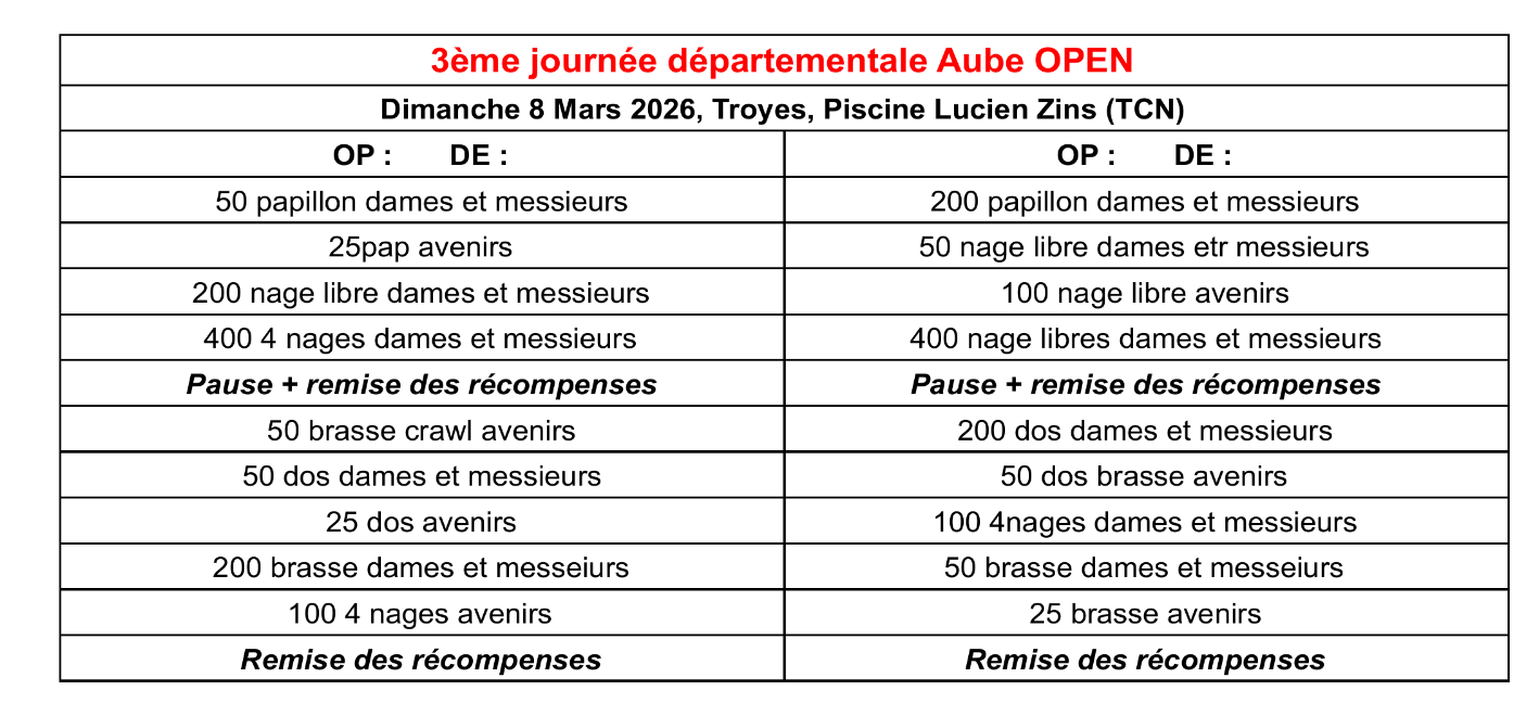 Pour les participant(e)s aux interclubs le 11 novembre, en attendant le programme détaillé, vous pouvez aussi y retrouver le planning des épreuves.
